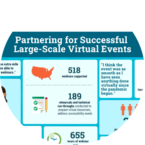 When our customers need a better way to provide training for their staff and external stakeholders, LSI finds the right technology solution to solve their problems. From VIPs to C-Suite executives to your integral day-to-day staff, we can help everyone have the best possible experience at your event. If you, like so many others, have pivoted to virtual events, our years of experience providing large-scale trainings will allow you to focus on your audience instead of event logistics.